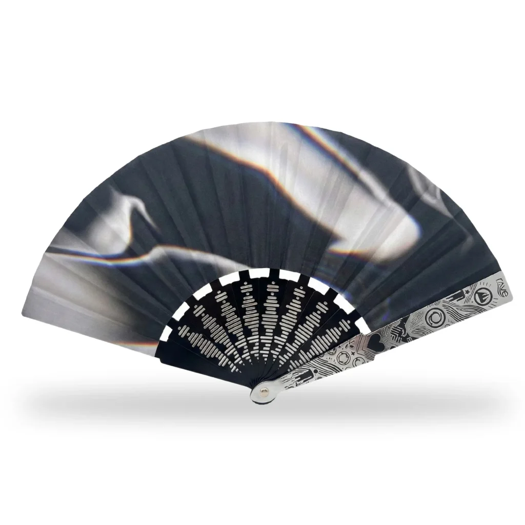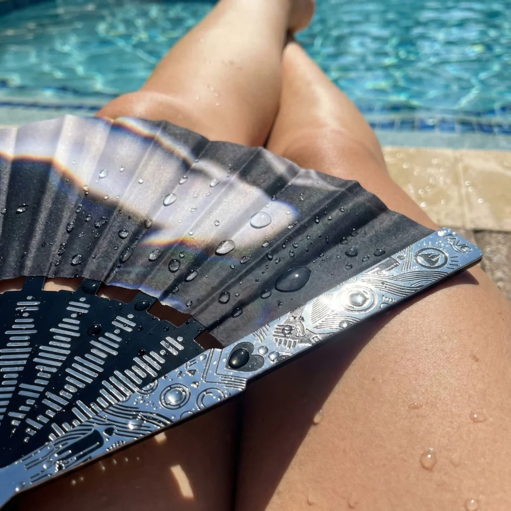 Es liviano, resistente y pensado para noches en las que el aire no corre ni por error. Abierto, marca presencia; cerrado, es un accesorio discreto que pasa de mano en mano sin perder estilo.